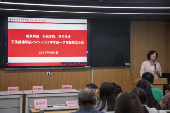 9月4日,卫生健康学院组织开展了2025-2026学年第一学期教职工大会暨师德师风(教风学风)建设专题会议。会议主要围绕统筹部署新学期教学工作、推进师德师风建设、第41个教师节庆祝活动三方面展开,旨在凝聚学院发展共识,为新学期工作开好局、起好步。学校副校长梅桂萍出席会议并讲话。